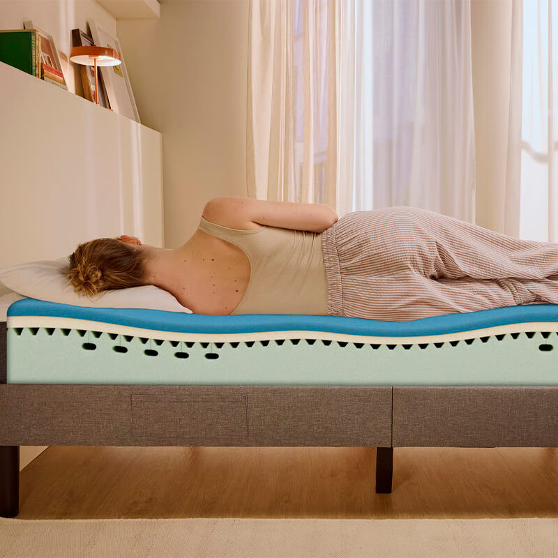 Su firmeza media ayuda a mantener una postura adecuada, mientras que su estructura reduce los puntos de presión y mejora la calidad del descanso.