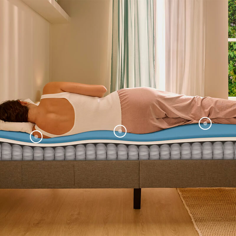 - Colchón híbrido con combinación de espuma, muelles y gel