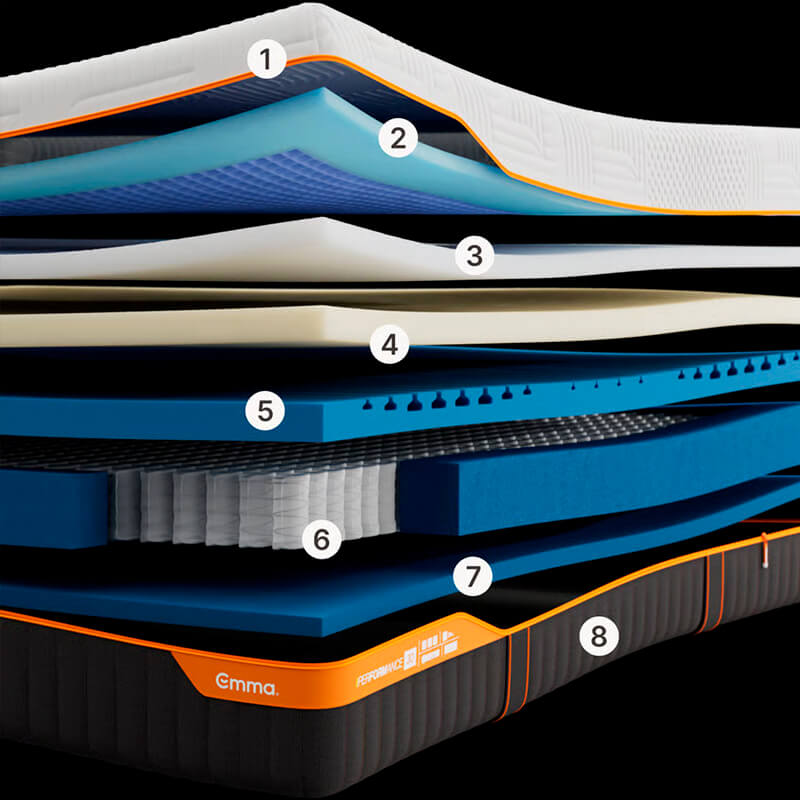 El Colchón Emma Performance 200×200 cm está pensado para quienes buscan el máximo espacio al dormir sin renunciar a una sensación adaptable. Su estructura híbrida combina espumas técnicas con muelles ensacados para ofrecer un descanso equilibrado.