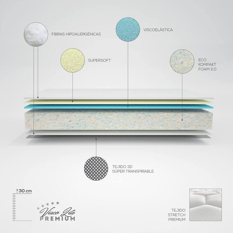 - Colchón viscoelástico con núcleo HR de alta firmeza.